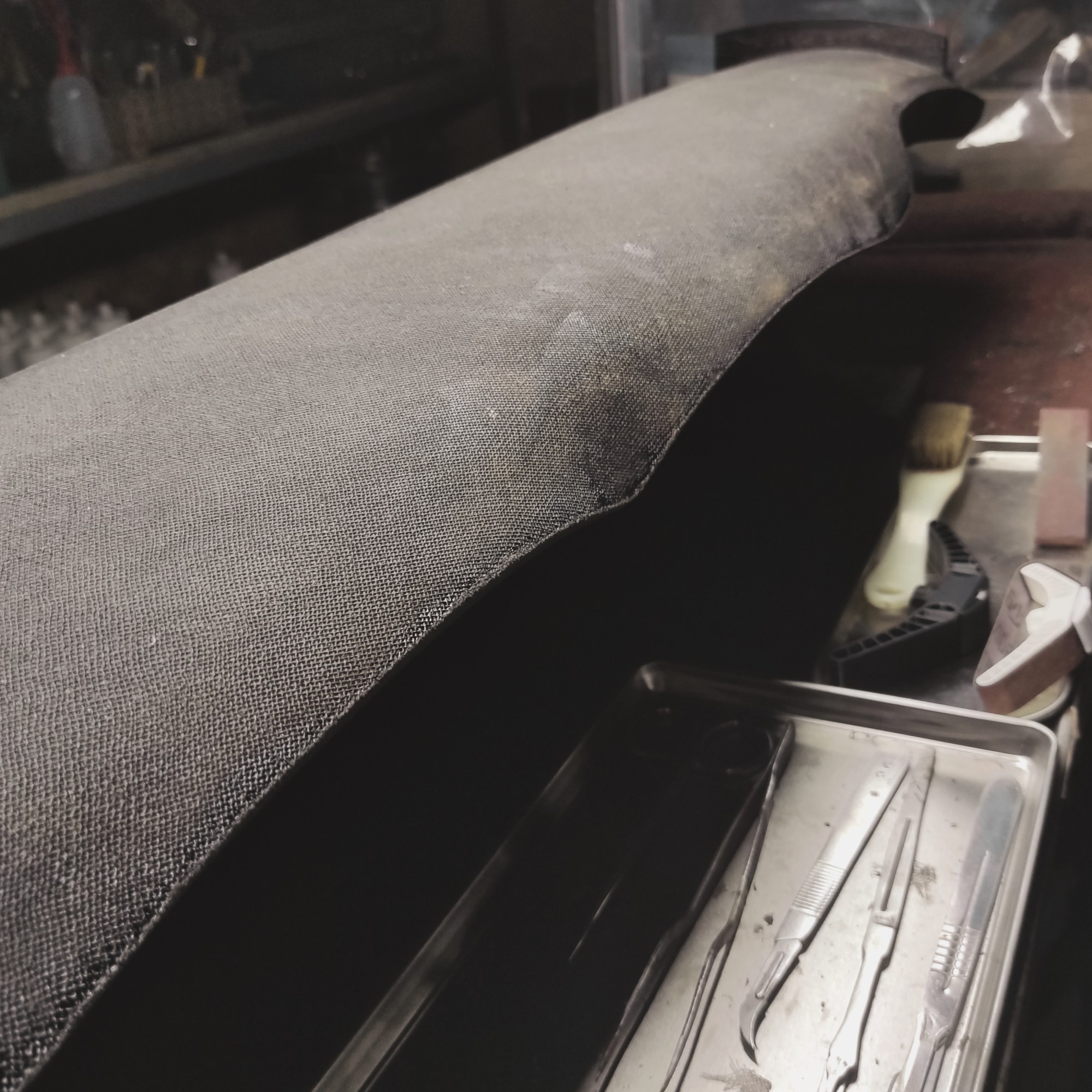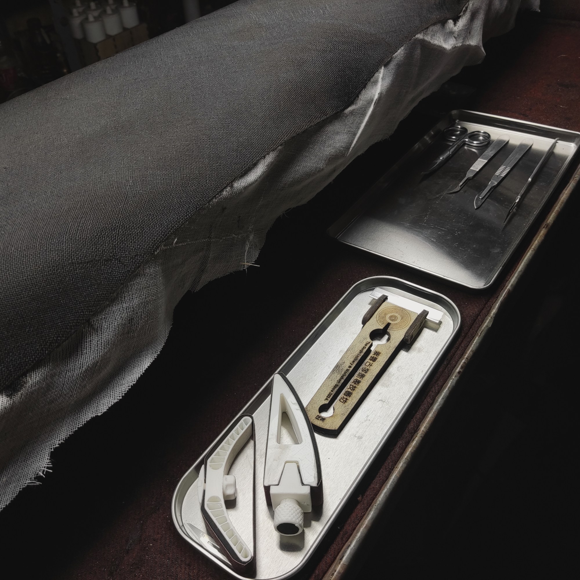 Guqin’s cloth-wrapping connects the woodwork and the lacquerwork. It is a milestone in the whole process of the Guqin crafting, and as the final version of the Guqin shape and temperament. The process of the Guqin wrapping (cloth layer) also affects the accuracy of every details by the following future, and the subsequent work will be dominated by the alternating cycle of lacquerwork and sanding-polishing.