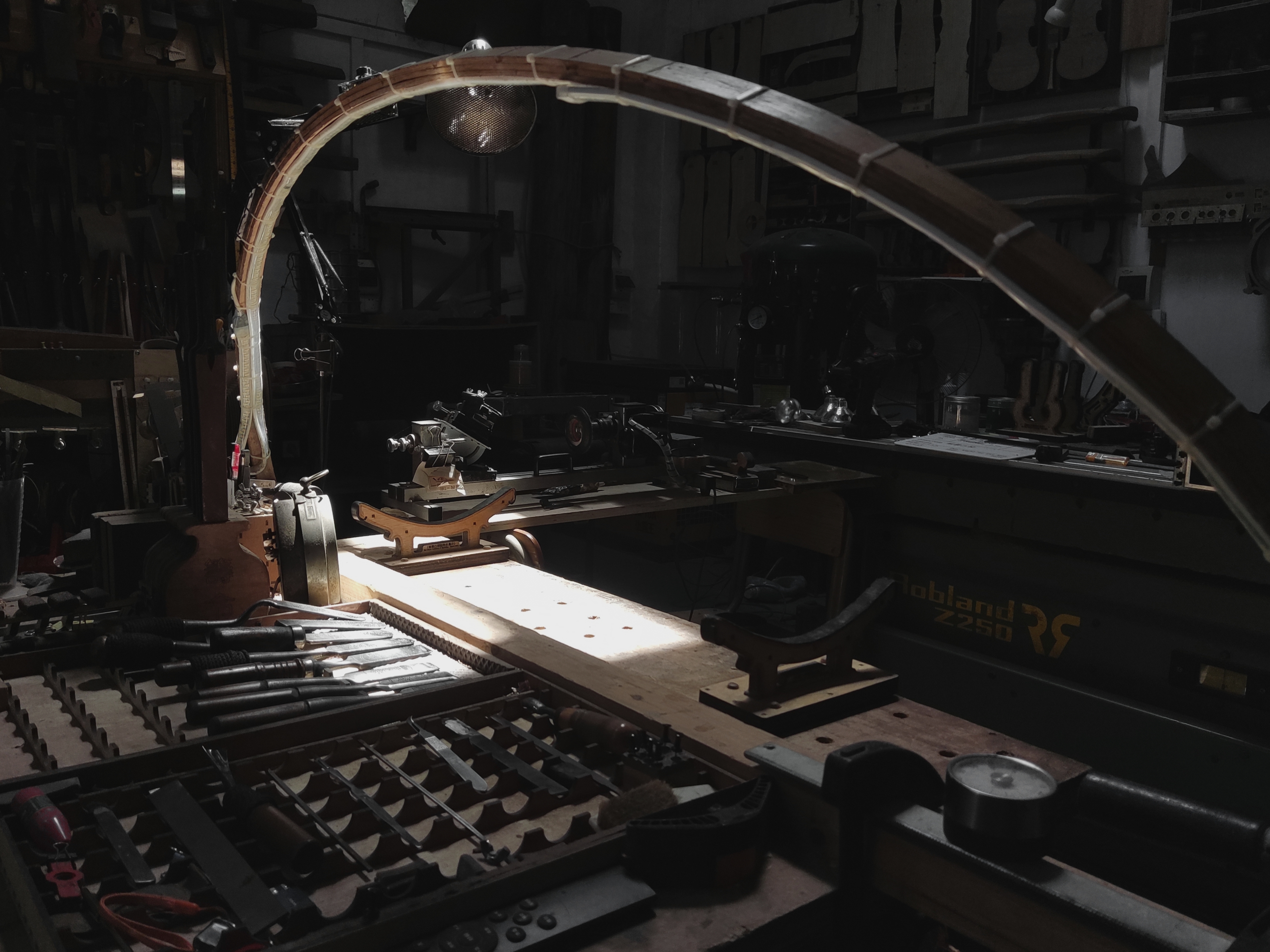 Usually, a small wooden mallet is used for tap-scanning, during the woods matching and cutting, and the tapping-sound is used for rapid diagnose various sections and deep layers, so as to avoid the potential cracks in the cutting materials. And at the same time, Cross-comparison of soundboards that match each other in the multi combination.